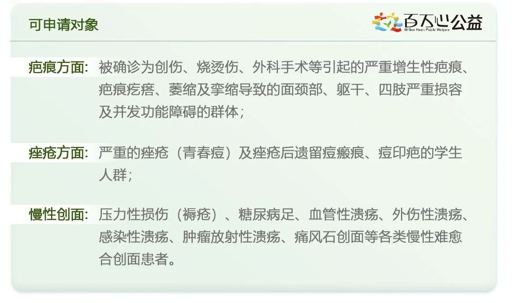 公益无小事,爱心无止境。重症痤疮、疤痕、慢性创面作为皮肤科临床常见且具有毁容性的疾病,严重影响患者身心健康,而严重的慢性创面患者常因治疗的专业不专,甚至面临截肢或趾,造成终身遗憾。