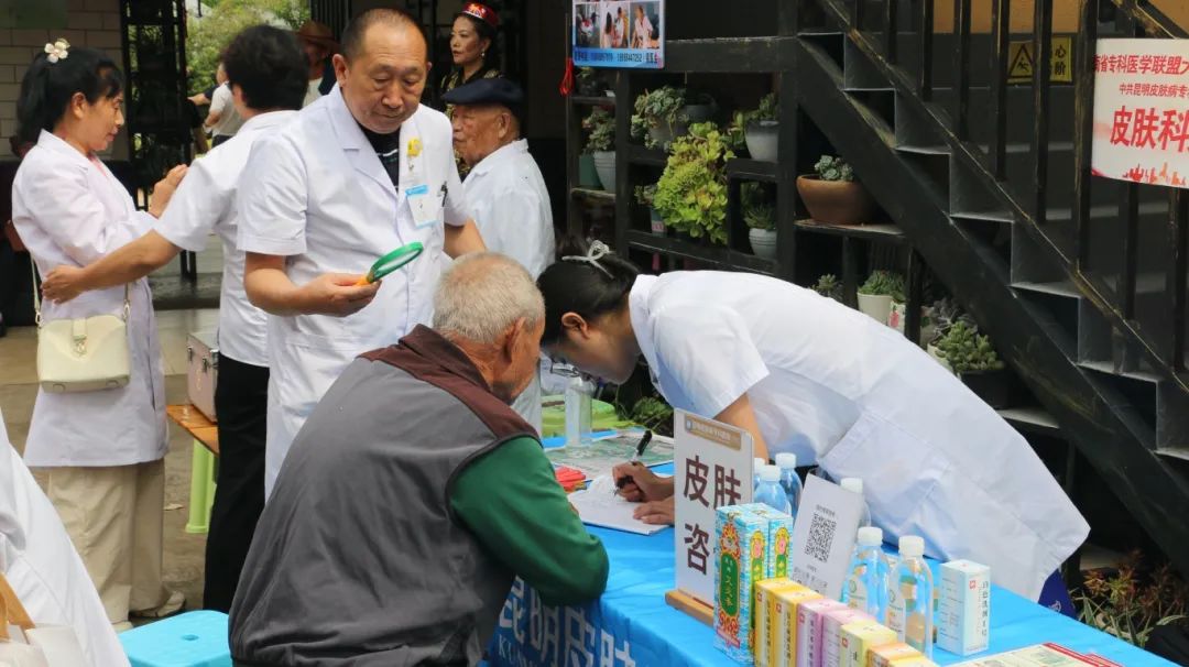 我院吴潞明主任为大家带来了一个因误诊而走遍艰苦求医路的故事,吴主任说道:‘失之毫厘,差之千里‘,大多数皮肤疾病都有很多相似之处,要想高效的治疗,精确的诊断和辨别是前提。而我院一直秉承专业全面的诊断、谨慎用药、对症施治的准则,杜绝因错误诊断给患者带来更大的伤害和损失。吴主任也提醒大家如果发现皮肤问题,一定要到正规医院准确诊断,对症治疗。故事分享结束后,各医疗爱心医院义诊团队为现场居民患者提供了皮肤、口腔、眼睛等方面的问诊服务和咨询。针对皮肤症状适应的患者还送出本院自主研发、生产的内制剂,义诊医生对节前、节后皮肤病防护要点为大家进行了科普,嘱咐有慢性病史的患者节日期间也要注意饮食和休息,提醒他们早预防、早诊断、早治疗。