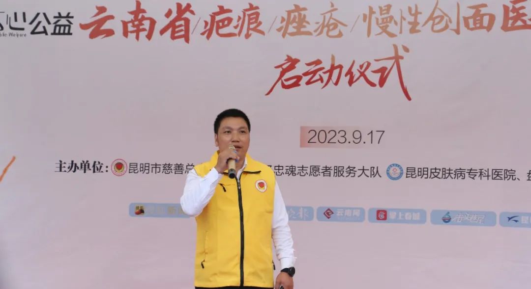 为进一步织密民众皮肤健康保障网、以多领域、贴心化、定制化的社区服务,把关爱皮肤病患者公益行动更加具体化、落地化,9月17日上午,百万心公益 | 云南省疤痕/痤疮/慢性创面医疗援助工程第一站社区启动仪式及专病义诊开诊仪式在盘龙区鼓楼街道桃源社区举行。盘龙区鼓楼街道交三桥社区书记王涛、昆明慈善忆忠魂志愿者服务大队队长周弋戈、副队长王云鹏、昆明皮肤病专科医院侯建凯院长、专家门诊吴潞明教授、百万心公益首例援助患者全国残运杨玉帅等人出席了议程。
